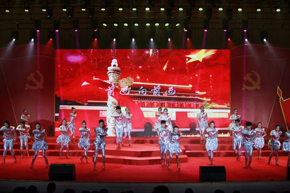 展演活動在鏗鏘有力的入黨宣誓聲中拉開帷幕。由先進黨員領誓言、100名新黨員宣誓、臺上臺下1500名共產黨員共誓的形式,重溫入黨誓詞,激蕩對黨忠誠和奮力實現“四個走在全國前列”的責任擔當。
