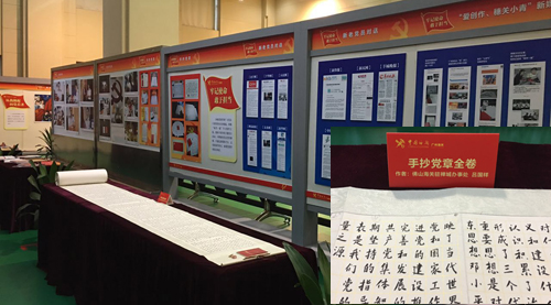 書畫展作品之一《手抄黨章全卷》,小圖為作品的其中一部分。