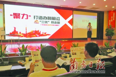 廣州市荔灣區國稅局辦稅服務廳現場展示“三優”黨支部作品。