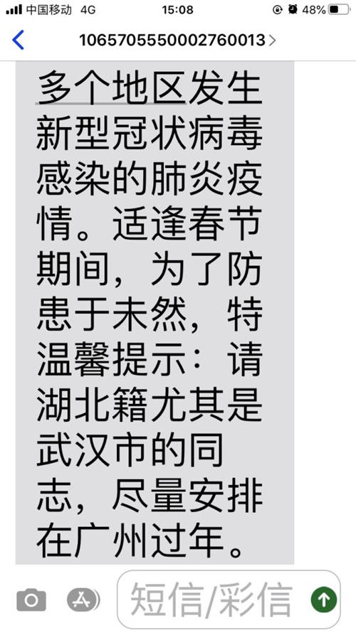 年前已及時發出短信,建議武漢籍干部職工留穗過年。