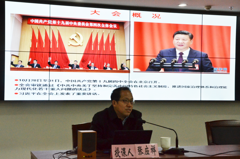 為進一步深入學習貫徹黨的十九屆四中全會和省委十二屆八次全會精神,推動全會的各項部署要求在中心得到不折不扣貫徹落實,12月11日上午,我中心邀請省委宣傳部講師團副團長張應祥到我中心作專題輔導報告。中心黨員干部職工共90余人參加,中心黨組書記、主任陳以良主持報告會。