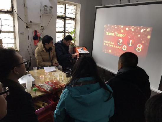 飯后,我們在簡陋的農家客廳就地搭好屏幕開始了話新春座談會。首先集中表彰了2017年支部評出“每季一星”黨員,勉勵他們繼續努力為支部同志帶好榜樣。接下來采取“一圖一故事”的形式每位同志講述自己的故事,回顧和總結過去的工作和生活點滴,重溫喜悅與歡笑、感動與幸福。有的同志回憶在井岡山和延安學習培訓時的情景,聯系現在的崗位和業務工作,更覺得應該發揚艱苦奮斗、不怕犧牲的精神;有的同志回憶家風教化自己二十余載堅持幫扶貧困學生的志愿者生涯,并將繼續矢志不渝、竭盡全力地堅守初心;有的同志回憶在鈾礦冶項目上冒著山坡塌方、道路崩塌危險趕往現場查看險情,克服了種種困難完成上級交辦任務……