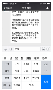 點擊左下角“小鍵盤”圖標,回復“學習”,如下圖所示: