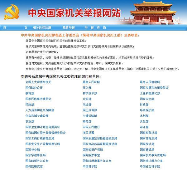“我們在網(wǎng)站列出了黨的關(guān)系隸屬中央國家機(jī)關(guān)工委管理的部門和單位的名單,群眾可以按圖索驥進(jìn)行舉報(bào)。”紀(jì)工委工作人員說。