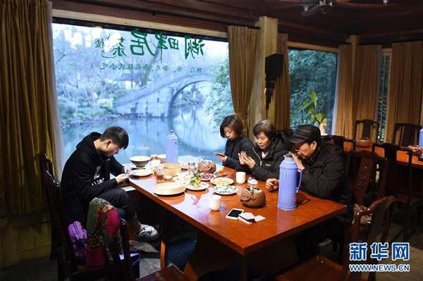 市民在杭州西湖“開心茶館”內喝茶休閑(2016年1月5日攝)。據了解,“開心茶館”轉型前為“西湖會”,轉型后成為平價茶館。新華社記者 黃宗治 攝