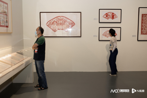 嘉賓在觀看剪紙、郵票等家風主題展陳實物。