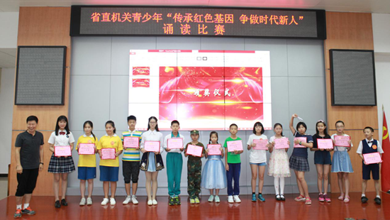 為推動中關工委在全國范圍內開展“傳承紅色基因、爭做時代新人”主題教育活動的深入進行,引導省直機關青少年牢固樹立和踐行社會主義核心價值觀,當好紅色基因的傳承者和實踐者,擔當起民族復興的大任。2018年8月28日上午,廣東省直屬機關關心下一代工作委員會在省直工委黨校組織了省直機關青少年“傳承紅色基因、爭做時代新人”誦讀比賽和“中華魂——《輝煌與夢想》”征文優秀作品頒獎。省關工委佀志廣副主任,吳澤耀副主任、省直工委肖懷躍副書記等領導蒞臨現場觀看,給學生們加油鼓勁,學生家長和部分省直單位關工委領導100多人參加了活動。