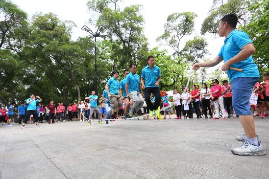 團隊比賽設(shè)置了呼啦圈和集體跳繩兩項,由各單位派出成員參賽。伴著歡快的音樂和輕盈的節(jié)奏,在大家的加油吶喊聲中,比賽如火如荼進行著。呼啦圈比賽的女將們以一腰之力,進行百繞千轉(zhuǎn)的挑戰(zhàn)。跳繩比賽中,隊員們團結(jié)一致,進行一圈又一圈的比拼。比賽難解難分,精彩紛呈。經(jīng)過激烈角逐,廣東廣播電視臺戴蘭蘭獲得呼啦圈冠軍,省出版集團拔得跳繩比賽頭籌。廣東廣播電視臺工會主席潘永玲、南方報業(yè)傳媒集團工會常務副主席蕭慧瑤分別為獲獎者和獲獎隊伍頒獎。