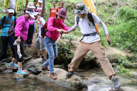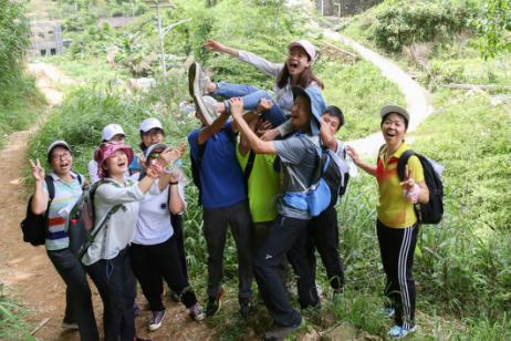 本次徒步全程約10公里,沿途山巒起伏,道路崎嶇。不僅如此,各隊員沿途還必須完成教練布置的幾道任務。正值6月酷暑,當天最高氣溫超過35攝氏度,對參與者身體和心理上都是一次極大的考驗。一路上,隊員們穿叢林、趟溪流,跨越了一重又一重障礙,完成了一次又一次挑戰。午后,突逢傾盆大雨,隊員們相互扶持、砥礪前行。風景如畫的溪頭村留下了隊員們的汗水與足跡,見證了大家的激情與歡笑。廣東女子職業技術學院的工會主席顏敏興奮地表示,從來沒走過這么長的路,今天是對自己的一次挑戰,要為自己喝彩。希望單位的同事都能走出來,不要錯過這樣的機會。