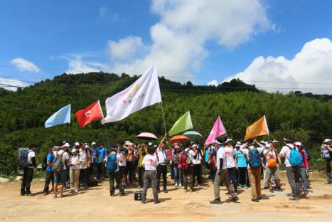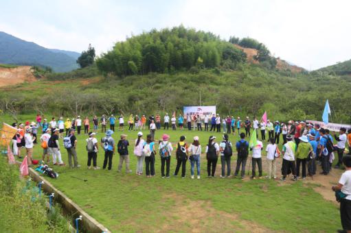 此次徒步活動的終點選在了風景秀美的從化溪頭村。上午10點,隊伍來到了從化東星村,這里林茂竹翠、峽谷清幽、民風淳樸,遠離都市的喧囂,隊員們在這里正式開始了一天的挑戰。隊員們被分為了紅、粉、藍、橙、綠五支隊伍,在隊旗的指引下前行。