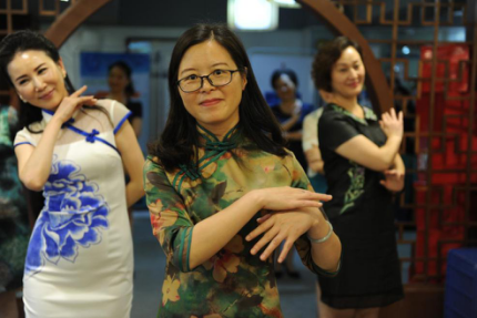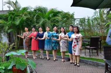 活動又以旗袍為依托,在展現女子的婉約優雅中,弘揚中國傳統美學。旗袍是中國女性著裝文化的典型標志,作為中華民族的代表服裝,凝結了整個民族幾千年的服裝文化之精華,學員從旗袍的歷史、分類和配搭開始,全面了解旗袍的前世今生。隨著學習的深入,大家對旗袍這項國粹有了更加全面的認識,加深了對旗袍的喜愛。課堂上,大家跟隨老師學習了旗袍禮儀與形體,雖然課程時間不長,但在充分的交流中,大家領略了剪裁之美和藝術之美。最后,經過簡短而細心的培訓,師生通力合作,課堂中上演了一場精彩的旗袍走秀和形體舞蹈表演,在老師的帶領下,伴著優美的音樂,踏著輕盈的節拍,學員們款款走來,盡顯中華傳統女性之雅。
