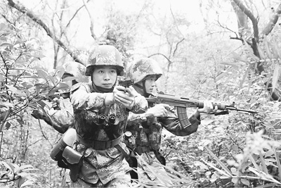 八連官兵進行叢林搜索。 劉謙攝(人民視覺)